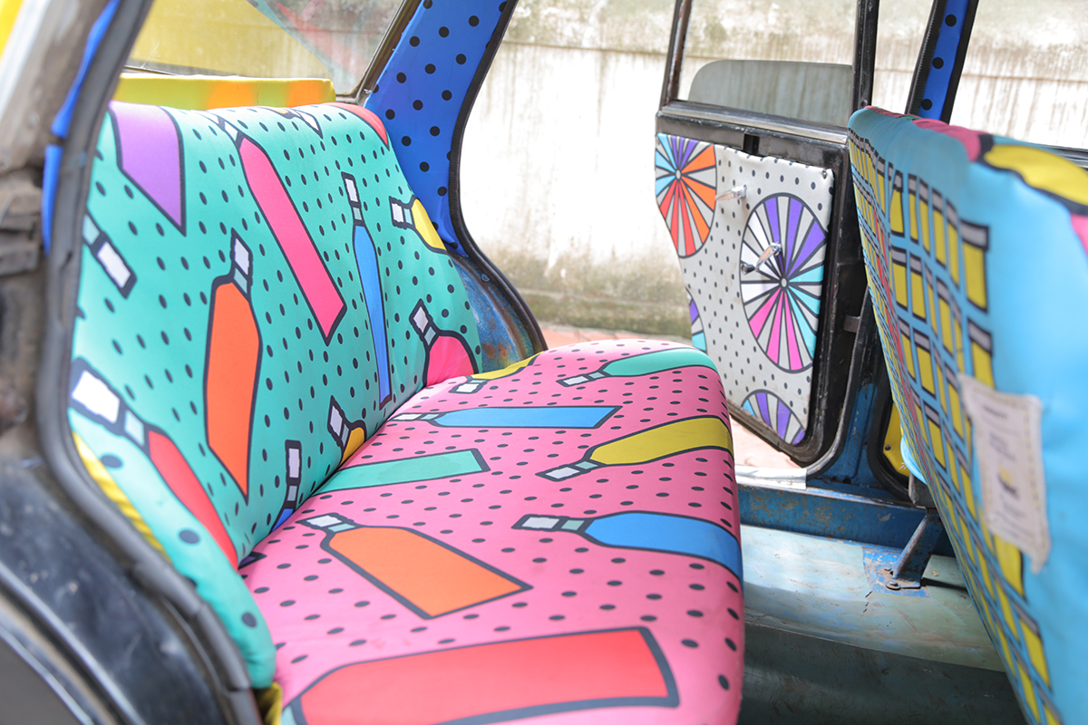 // I taxi in India, in particolar modo a Mumbai, non soltanto sono i mezzi di trasporto più convenienti ma col tempo sono diventati anche un iconico oggetto della cultura del posto. Purtroppo troppo poca attenzione viene riservata ai tessuti utilizzati per rivestire i sedili e gli interni dell’auto. Molto spesso infatti i sedili sono monotoni e banali e, con il potenziale di design che ha Mumbai, si doveva intervenire in qualche modo.