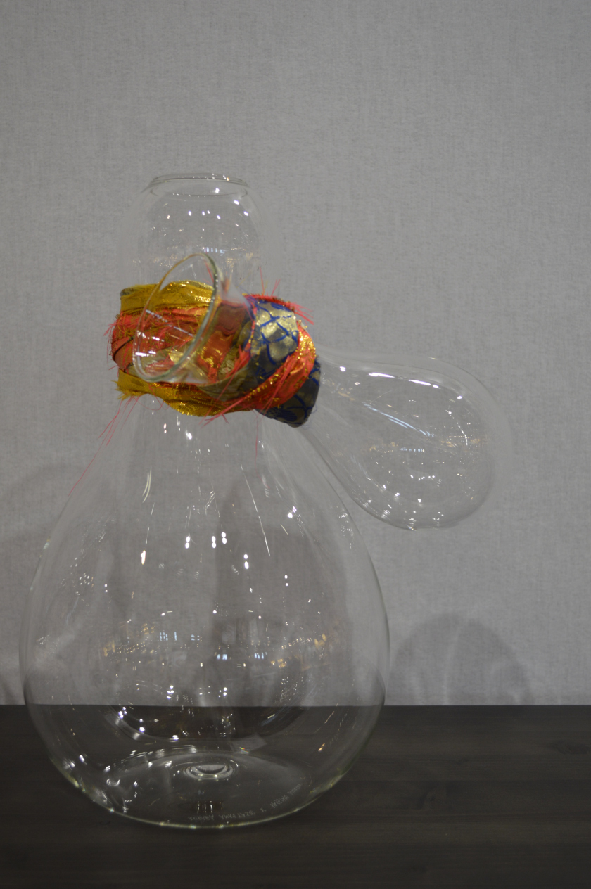 Supported red thread, hand blown glass vase by Andrea Anastasio for Poets.