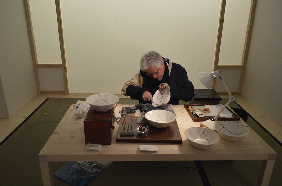 6 Faceted Boxes, collection of porcelain/gold/glass boxes by Andrea Walsh.