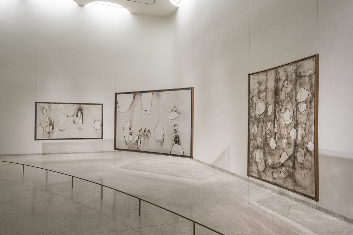 Installation view: Alberto Burri: The Trauma of Painting, October 9, 2015-January 6, 2016, Solomon R. Guggenheim Museum. Photo: David Heald (c) Solomon R. Guggenheim Foundation.