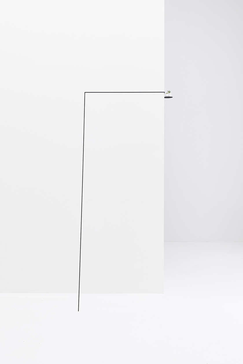 Ci siamo fatti ispirare da elementi normalmente cosiderati “problematici”, l’angolo della stanza o le colonne sporgenti. Durante il processo, abbiamo verificato a tentativi sia come l’arredo fosse bilanciato quando è collocato all’interno dello spazio, così come le sue proprie proporzioni. Tutto questo ha portato alla creazione di misteriosi tavoli composti da una barra in metallo a sezione quadrata di 5mm con un piccolo piano d’appoggio di raggio di 10cm.