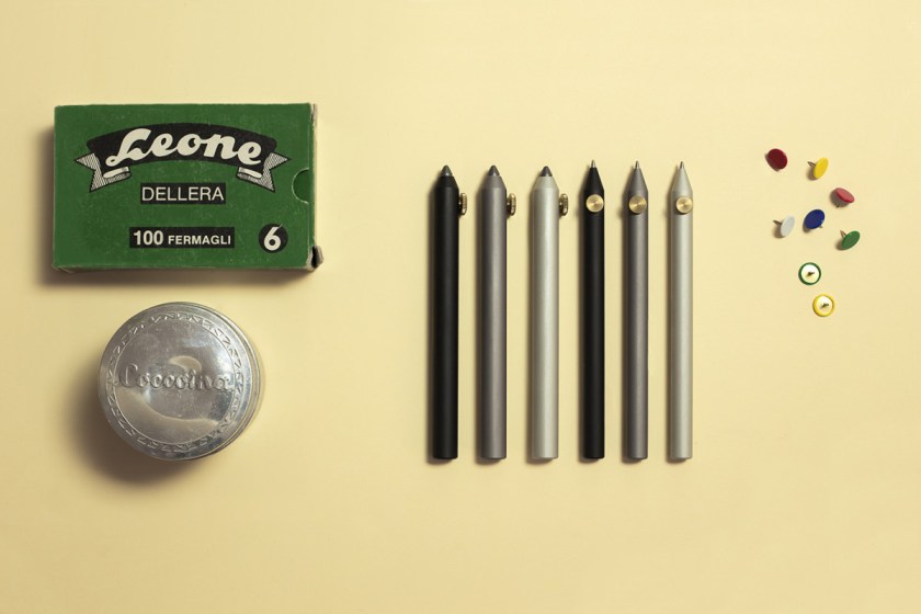 Neri is an exercise in absolute minimalism for design junkies and aficionados of writing. Neri falls outside the usual automatic opening/closing system and the classic cap. Indeed, the placement of the leads and ability to regulate their length – and also that of the pen refills, a highly unique feature – is done by simply turning the contrasting brass thumbscrew, a technique derived from the gesture for adjusting the points of compasses used in technical drawing.