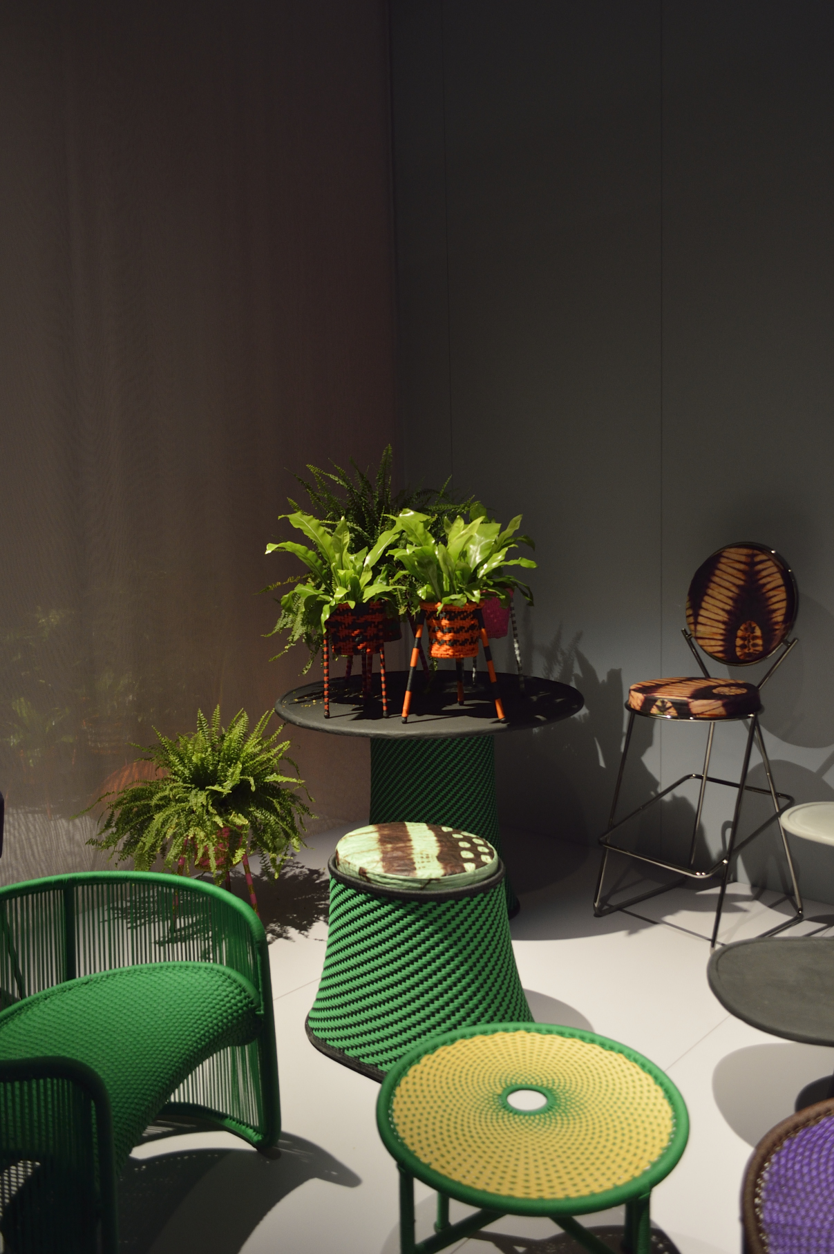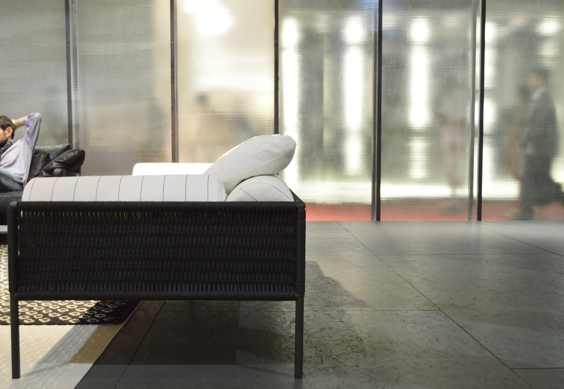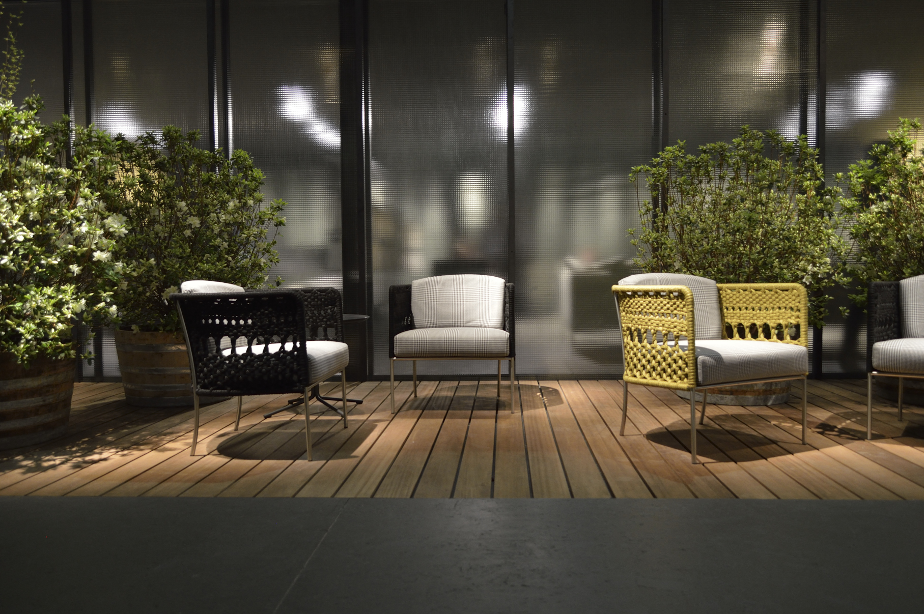 Absolute novelty of this year is the new LOOM carpets, hung like tapestries throughout the RODA stand. Handmade on loom and available in various colors and types of patterns, the LOOM carpets furnish the living corners bringing another “piece of home” outside.