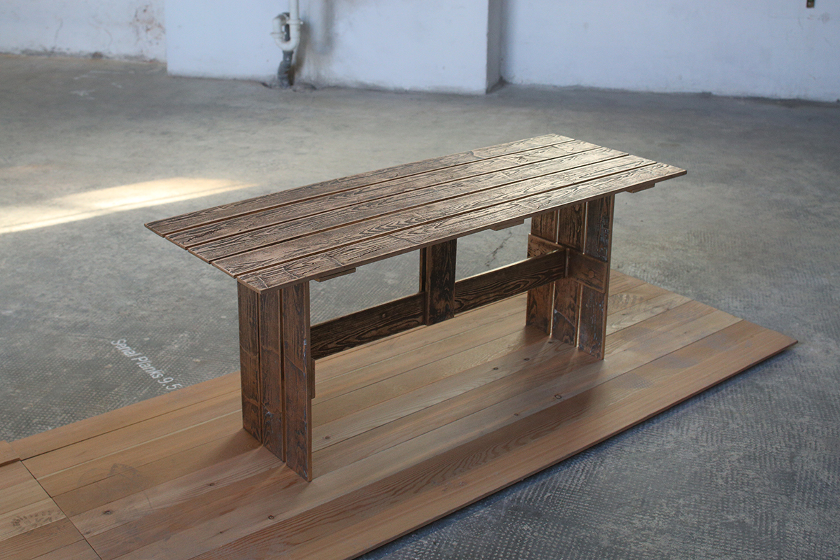 La serie di sei pezzi realizzati su misura e disegnata in esclusiva per Nilufar Gallery, consiste in arredi realizzati con diverse assi di bronzo utilizzate in modo tale da creare infinite forme. Da un’asse madre di legno di larice lunga 150cm e larga 7cm, Faccin realizza uno stampo per replicare all’infinito assi di bronzo uguali a se stesse ma ogni volta diverse per via del processo manuale, antico, dove l’imperfezione assume valore. La ripetizione, caratteristica dei sistemi industriali, si avvicina all’ arte con Francesco Faccin.
