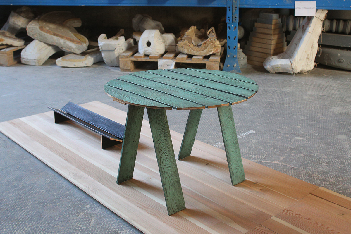 The collection of six pieces made to measure, exclusively designed for Nilufar Gallery, consists of furniture made with a series of bronze planks used to create an infinite number of shapes. A larch plank (150 cm long and 7 cm wide) is used to make the mould and replicate the bronze planks, which despite being the same, are different due to the ancient manual process they are made with, where imperfection becomes an added value. Repetition, typical of industrial systems, reaches art thanks to Faccin.