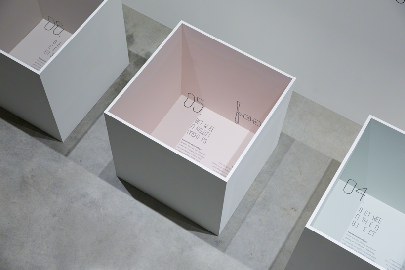 The exhibition was not to be an open space and neither divided by floor to ceiling walls. Instead it was decided that the pieces are to be displayed using 900mm high wall. This allowed the openness of space while also ensuring a display method to highlight the design perspective of each piece, and maintaining security and safety at the same time. The appearance of the “part of the top” of the pieces appearing and disappearing and the people trying to peak over the wall resembles a “zoo” like experience, which gives a moderate sense of a distance between the people and the pieces.