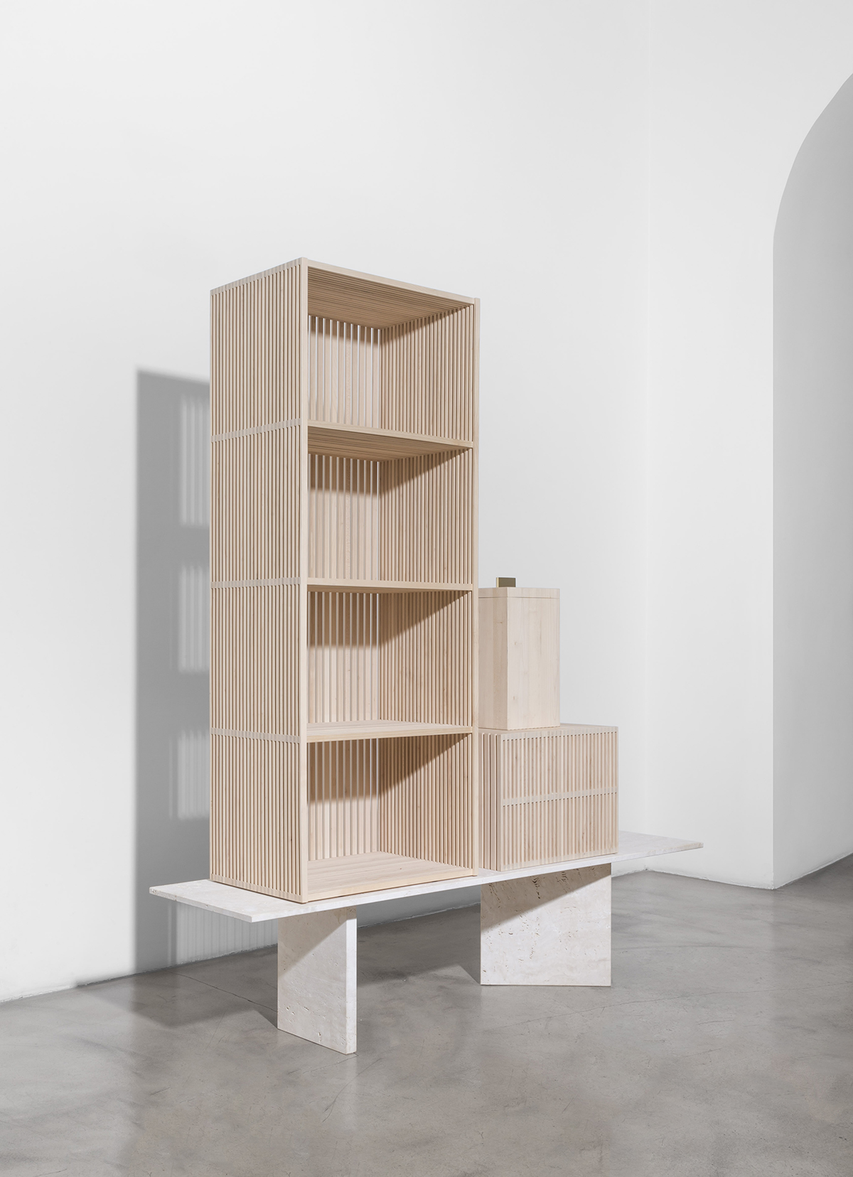 As often in their work the designers found knowledge in the past: Almost as in a study-trip to the city, Formafantasma visited the numerous Roman archeological venues and museums and accumulated a large numbers of photos and documents that over the year-long process to design the collection have become the fondation of their work. During this time a clear selection of materials emerged made of marbles, metals, porcelain and wood while the collection is composed by a large number of lights, some vessels a oil lantern, a cabinet and a mirror.