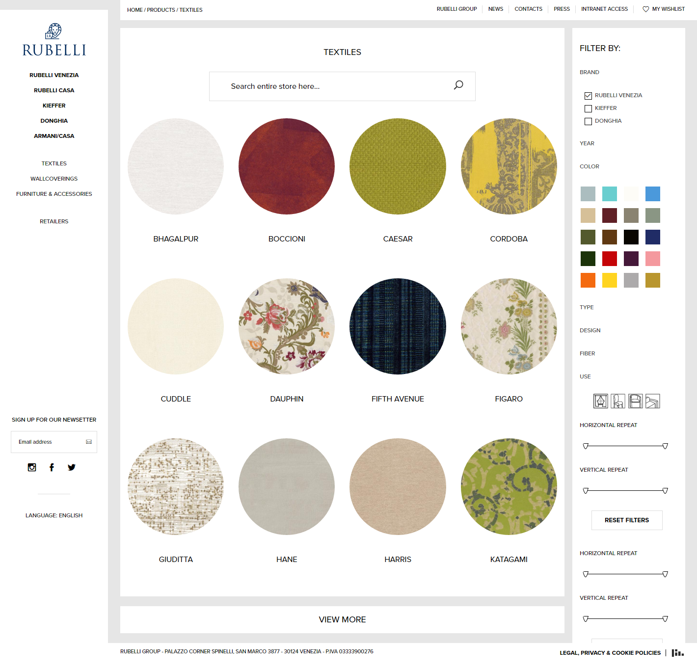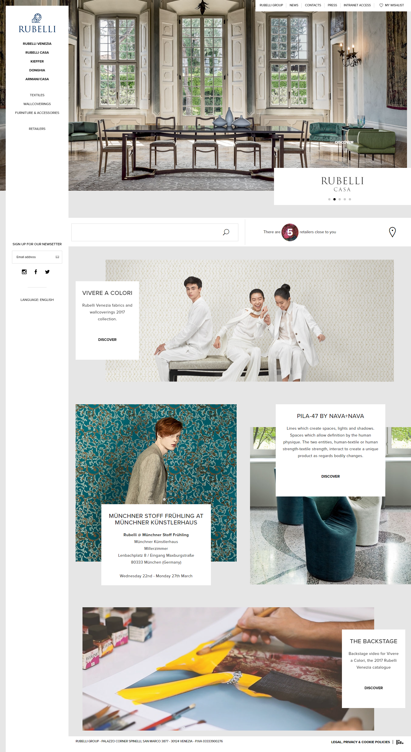 The website of the historic Venetian brand has undergone a deep restyling both graphic and functional and now the users can easily experience the world of Rubelli on every device (laptop, smartphone and tablet).