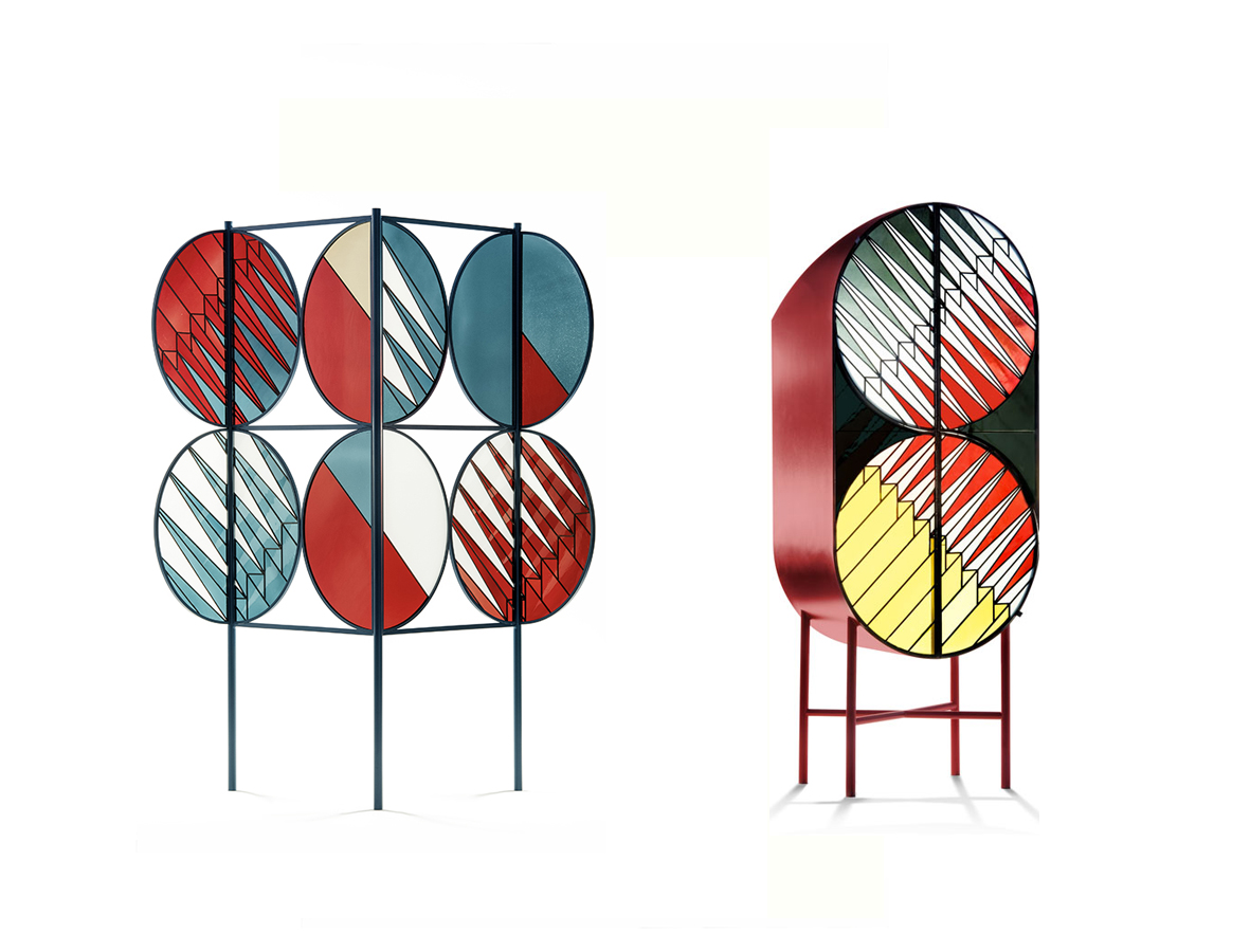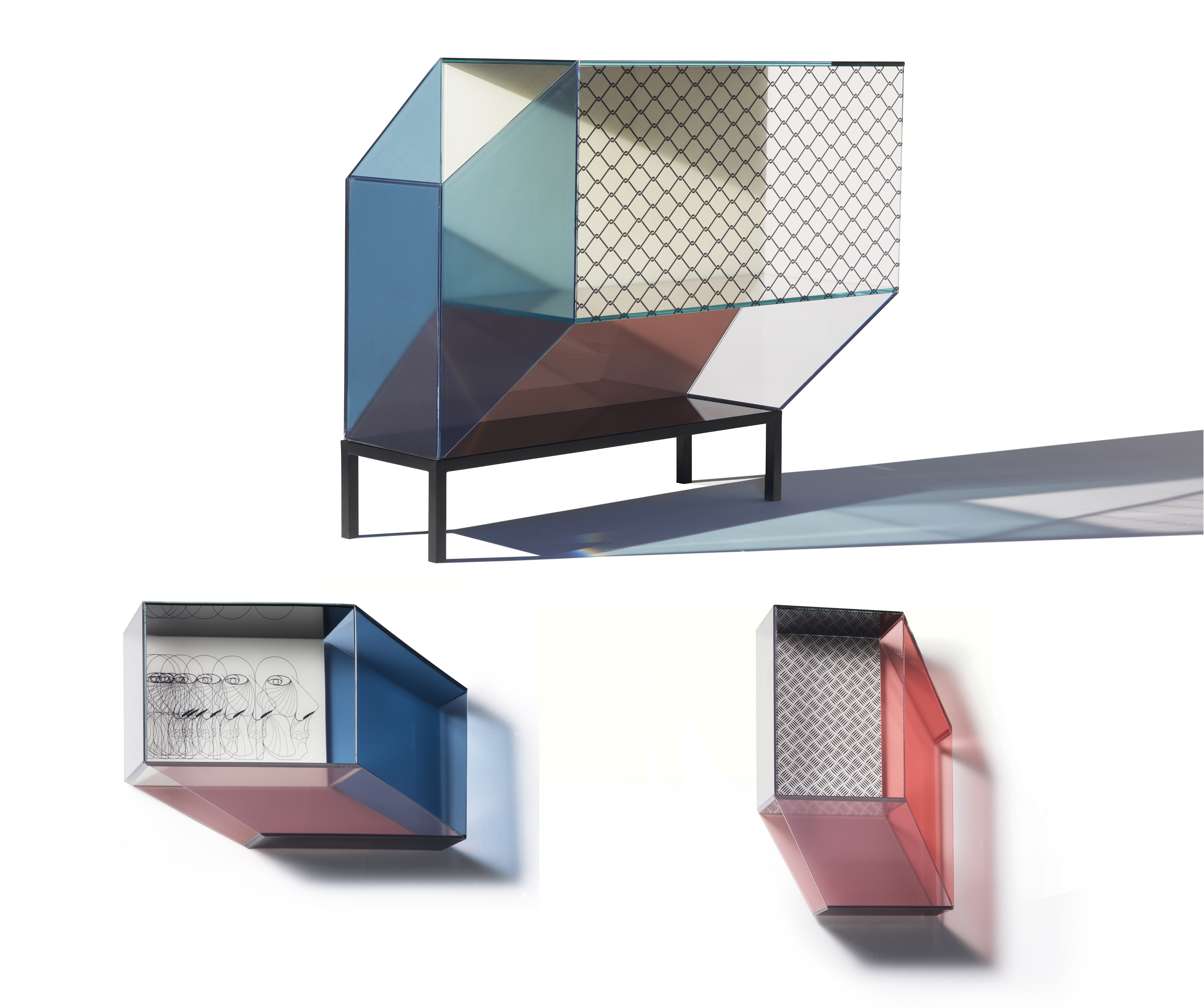 Credenza sideboard by Federico Pepe + Patricia Urquiola. A series of furniture in stained glass that is inspired by the windows of holy sites as the ones created by Gerhard Richter for Cologne’s Cathedral.