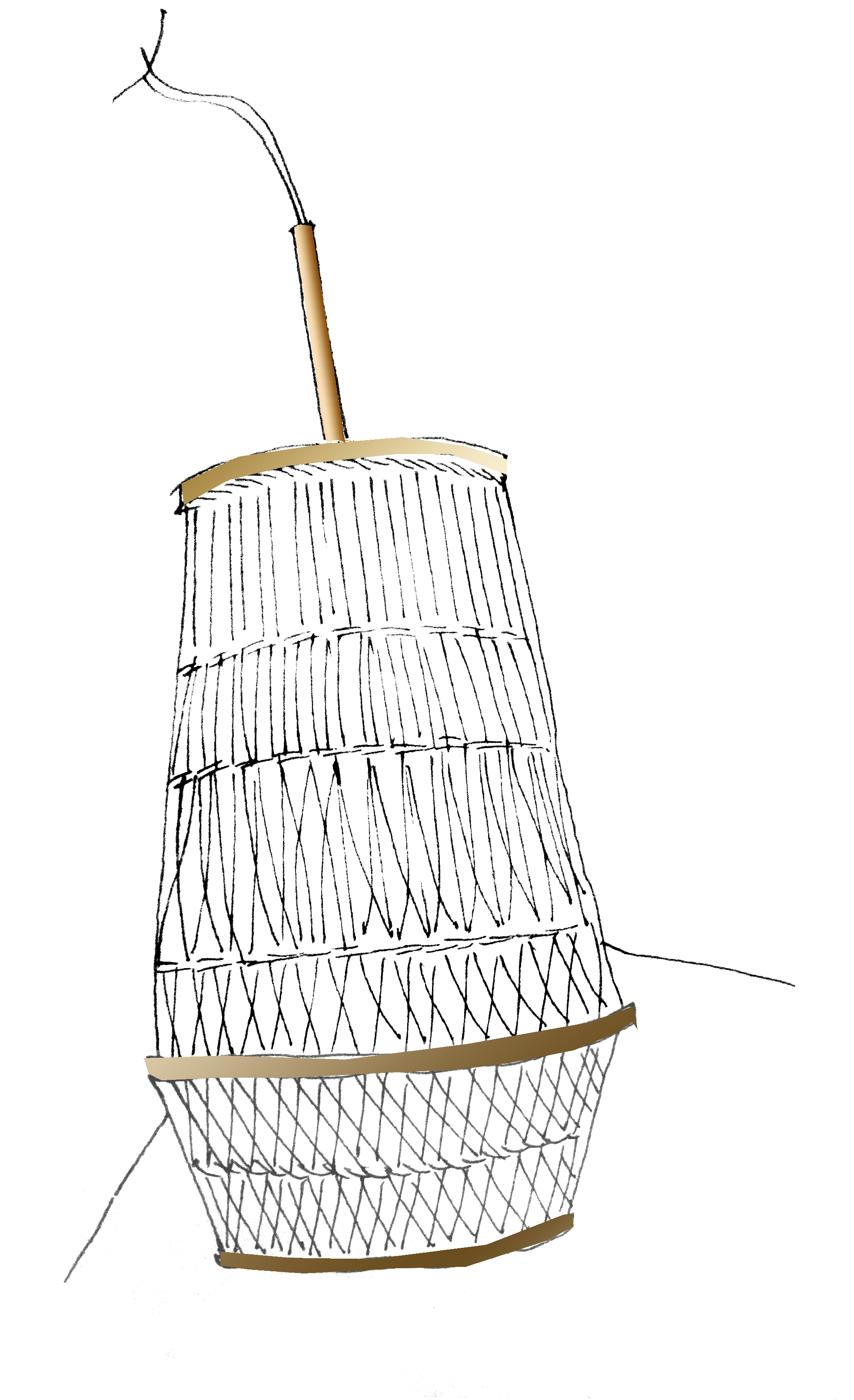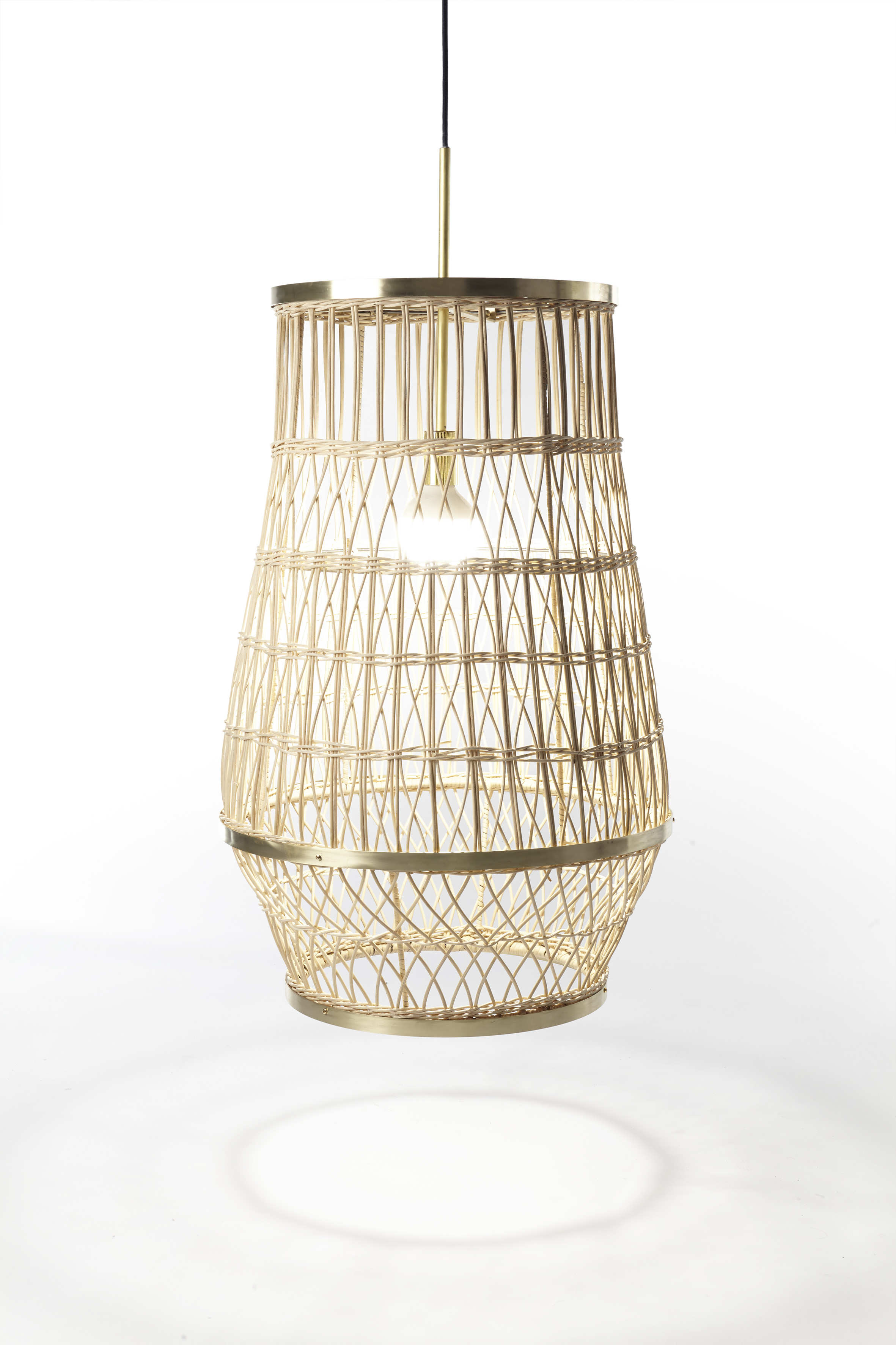 Nasse is the Italian word for fish nets. Nasse is the result of the unexpected combination of two different worlds: a rugged raw material such as rattan and the sharp precision of brass elements.