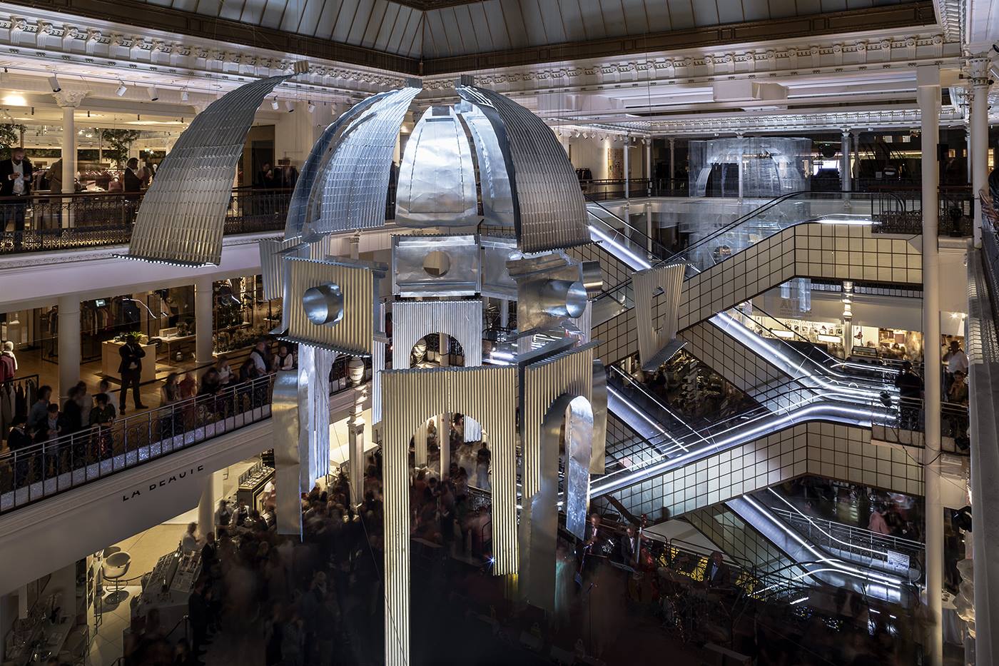 Suspended in the halls of Le Bon Marché, the two artworks are, in the words of the artist, “like relics on display in an 18th century natural history museum. By observing them, visitors trace back the historicity of architecture through its components.”