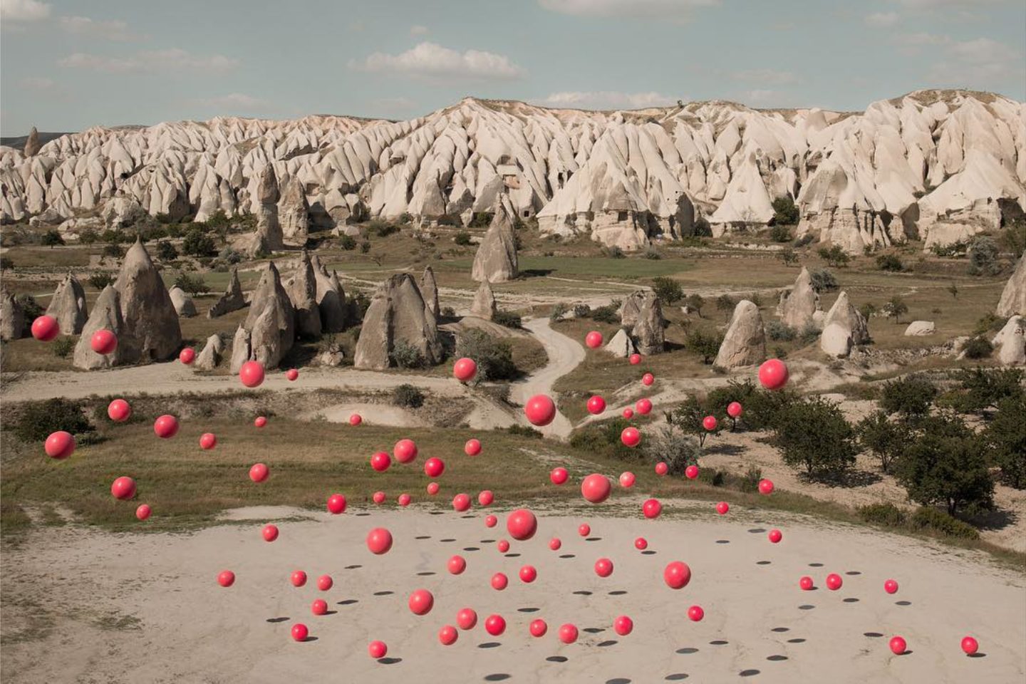 Per far questo, ha fotografato una serie di oggetti (stivali di gomma, lenzuola o camicie, palline) che ha lei stessa precedentemente disposto in installazioni in differenti contesti e paesaggi naturali, disponendoli secondo degli schemi curvilinei, seguendo o entrando in contrasto con ciò che li circonda.